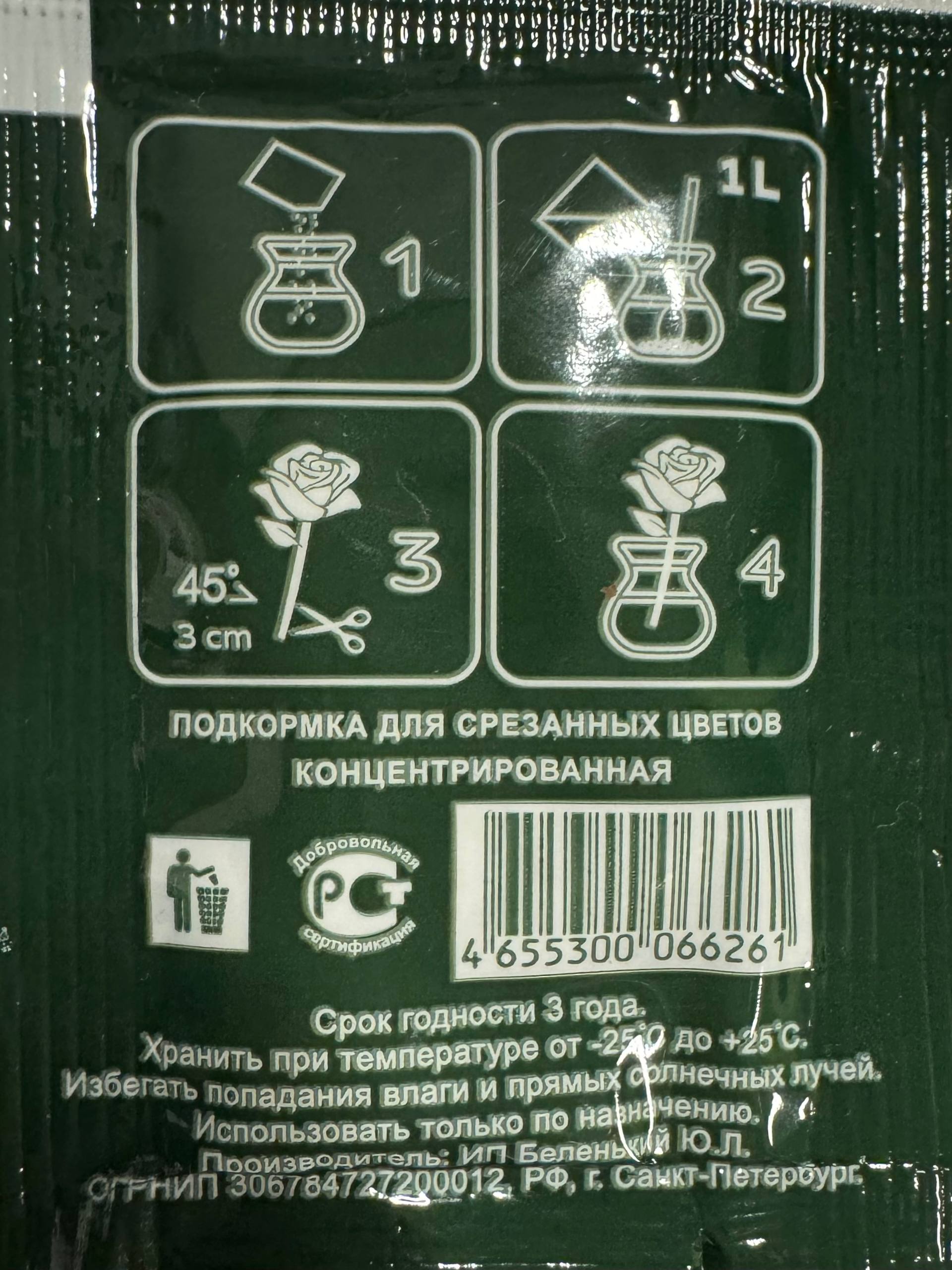 Способствует раскрытию бутонов; Цветы гарантированно стоят в вазе более 7 дней.